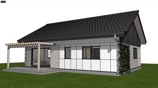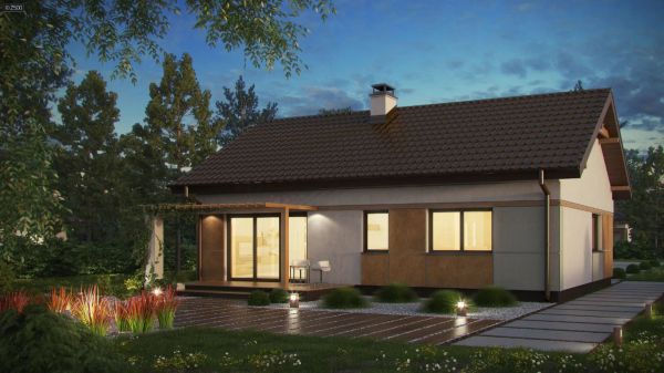 Parterowy dom z dwuspadowym dachem, tani w budowie i eksploatacji.