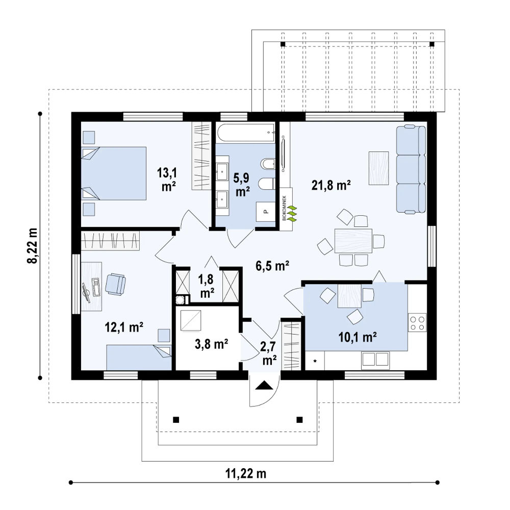 Powierzchnia zabudowy - 92,2 m²