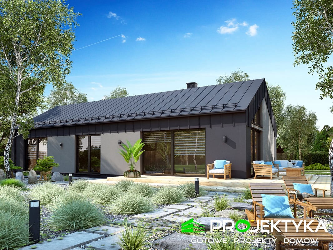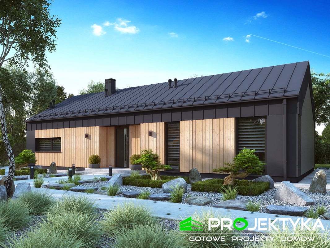 Ka237 Sz to atrakcyjny projekt domu parterowego skryty pod dwuspadowym dachem.