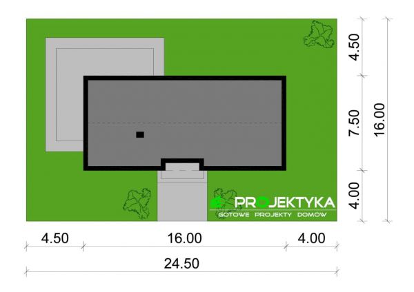 Min. wymiary działki - 24.5 m / 16 m